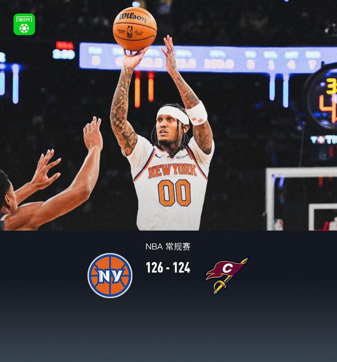 北京时间12月26日,NBA常规赛中,纽约尼克斯队对阵克利夫兰骑士队。半场结束尼克斯60-58骑士,最终尼克斯126-124骑士。纽约尼克斯队布伦森34分1篮板4助攻,克拉克森25分1篮板2助攻;克利夫兰骑士队的米切尔得到34分、7个篮板和6次助攻,达柳斯·加兰得到20分、1个篮板和10次助攻。尼克斯队布伦森首节得到10分,骑士队米切尔得到12分。首节战罢,尼克斯23-38落后骑士。第二节尼克斯克拉克森拿下11分,骑士埃文莫布里拿下8分。半场结束,尼克斯60-58领先骑士。第三节,尼克斯队布伦森拿下7分,骑士队杰伦泰森拿下11分。第三节结束,尼克斯以84-96落后骑士。第四节结束尼克斯84-96落后骑士h 季度。斯布伦森得到13分,骑士队米切尔得到15分。最终,尼克斯队以126-124击败骑士队。球员数据:纽约尼克斯队布伦森34分1篮板4助攻2抢断,克拉克森25分1篮板2助攻3抢断,科勒克16分3篮板9助攻1盖帽;克利夫兰骑士队米切尔34分7篮板6助攻4抢断,达柳斯加兰20分1篮板10助攻,杰伦泰森16分6篮板1助攻1抢断。纽约尼克斯队首发:布伦森、约什哈特、米卡尔布里奇斯、唐斯、OG阿奴诺比;克利夫兰骑士队:米切尔、达柳斯·加兰、梅里尔、阿伦、迪恩·韦德。