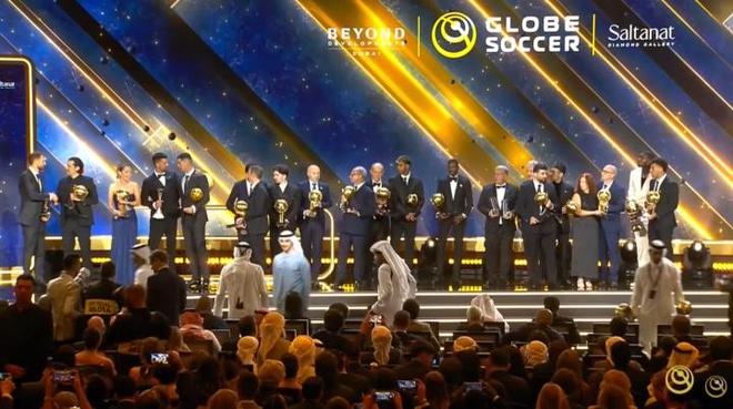 北京时间12月29日凌晨,环足奖颁奖典礼成功举行。本次颁奖典礼共颁发了23个奖项。其中,C罗连续三年获得中东最佳球员荣誉,亚马尔获得两项奖项,博格巴也获得一座奖杯。登贝莱当选年度最佳球员。法国人在2025年的表现无可挑剔。他此前还曾获得金球奖和世界足球先生。巴萨的邦马蒂也毫无悬念地当选最佳女足运动员。巴黎被评为最佳男子足球俱乐部。巴黎俱乐部是本次颁奖典礼上的最大赢家。除了登贝莱和俱乐部本身之外,纳赛尔(最佳主席)、维蒂尼亚(最佳中场)、杜埃(最佳新人)、恩里克(最佳主教练)、坎波斯(最佳体育总监)也获得了相应奖项。巴塞罗那也收获颇丰。其中,亚马尔获得年度最佳前锋、马拉多纳奖和西甲最佳前锋奖三项大奖最佳U23球员。此外,弗里克当选西甲最佳教练,拉菲尼亚当选西甲最佳球员,巴塞罗那女足当选年度最佳女足俱乐部。 40岁的C罗连续三年被评为中东年度最佳球员。在沙特阿拉伯,C罗的受欢迎程度无与伦比,地位也无可动摇。同时,博格巴获得了环足奖最佳复出奖。博格巴此前因服用兴奋剂而被禁赛。今年7月,他与摩纳哥签约。然而,他在过去的六个月里只打了30分钟,并且一直受到伤病的困扰。在颁奖典礼最后,全体获奖选手上台合影留念。共有21人上台,几乎占满了舞台。这21人将获得巨额奖金。附2025年足球奖获奖名单:西甲最佳教练弗里克、西甲最佳门将奥布拉克a拉菲尼亚、西甲亚马尔最佳球员、西甲葡萄牙U23最佳球员、最佳国家队门德斯、最佳经纪人坎波斯、巴塞罗那最佳体育总监、最佳女足俱乐部恩里克、最佳新帅中田希德托斯、最佳新帅中田爱。伊涅斯塔,职业贡献奖若塔,特别纪念奖维蒂尼亚,最佳中场亚马尔,最佳前锋博格巴最佳复出亚马尔马拉多纳奖克里斯蒂亚诺·罗纳尔多最佳中东球员巴黎圣日耳曼最佳男子足球俱乐部阿尔纳赛尔最佳主席波马蒂最佳女足球员登贝莱最佳球员德约科维奇全球体育奖